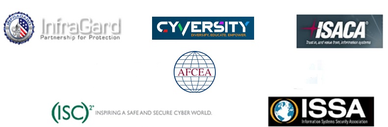 Member of several organizations including InfraGard, Cyversity, ISACA, AFCEA, ISC2 and ISSA.